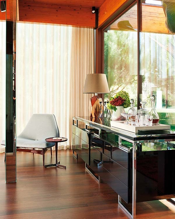 This beautiful modern house is located in Portugal. The interior is modern, cozy and in warm tones. Cheerful red, orange, intense wood colors create a joyous atmosphere. Minimalism is